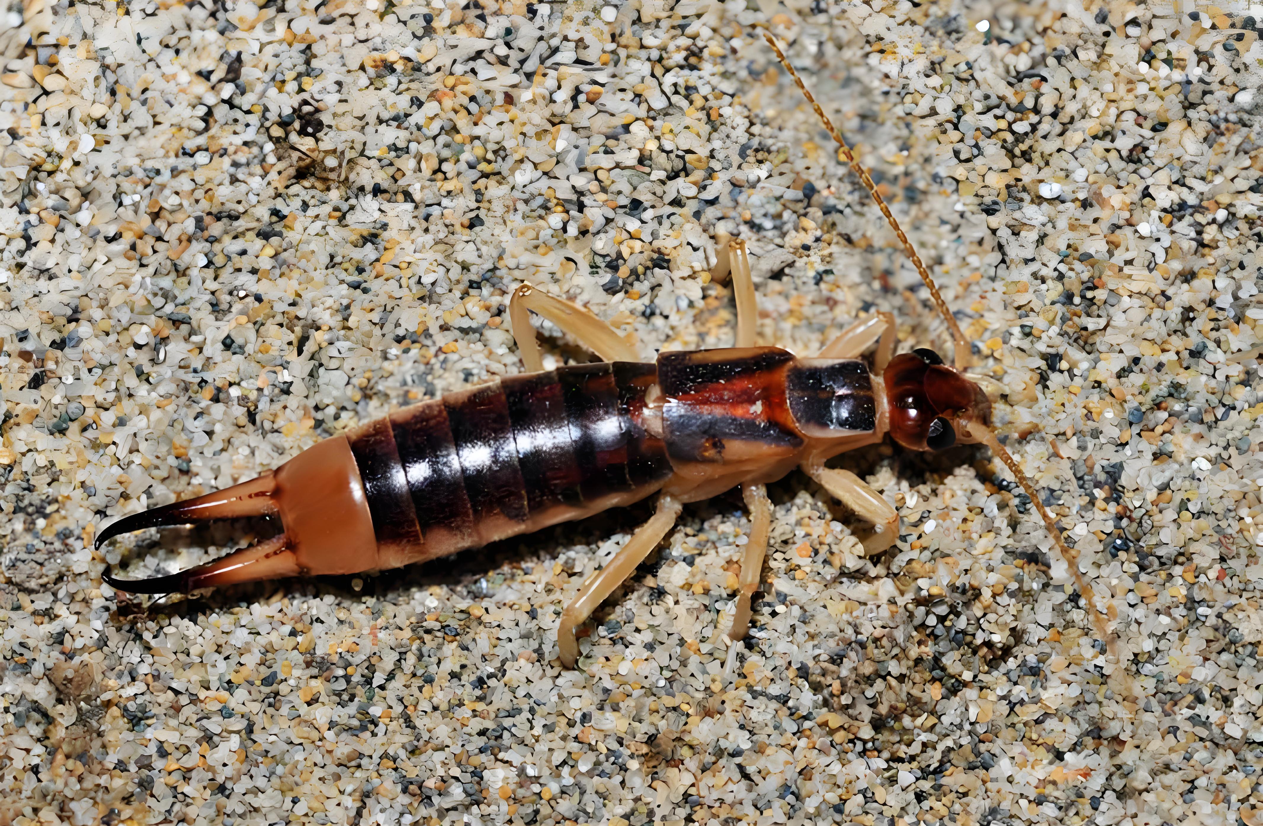 日本蠼螋Labidura japonica De Haan 蠼螋(earwig Furficulidae)是革翅目,螺蝮科的統(tǒng)稱。體長(zhǎng)4mm`35mm,體狹長(zhǎng),略扁平,頭扁寬,觸角絲狀,無單眼,口器咀嚼式: 前胸背板發(fā)達(dá),方形體表革質(zhì),有光澤;前翅特化為極小革翅;后翅大,膜質(zhì),扇形或略圓形、常露于前翅外; 尾須俠狀:無產(chǎn)卵器;腹部第3節(jié)、第4節(jié)腺 褶能分泌特殊臭氣驅(qū)敵;體尾末端有一對(duì)鉗狀尾俠 用于防御。 寒帶一年一代,以成蟲越冬,卵成串產(chǎn) 于土表洞穴中,兩性同居,有保護(hù)子代、喜夜行習(xí) 性,雜食性;